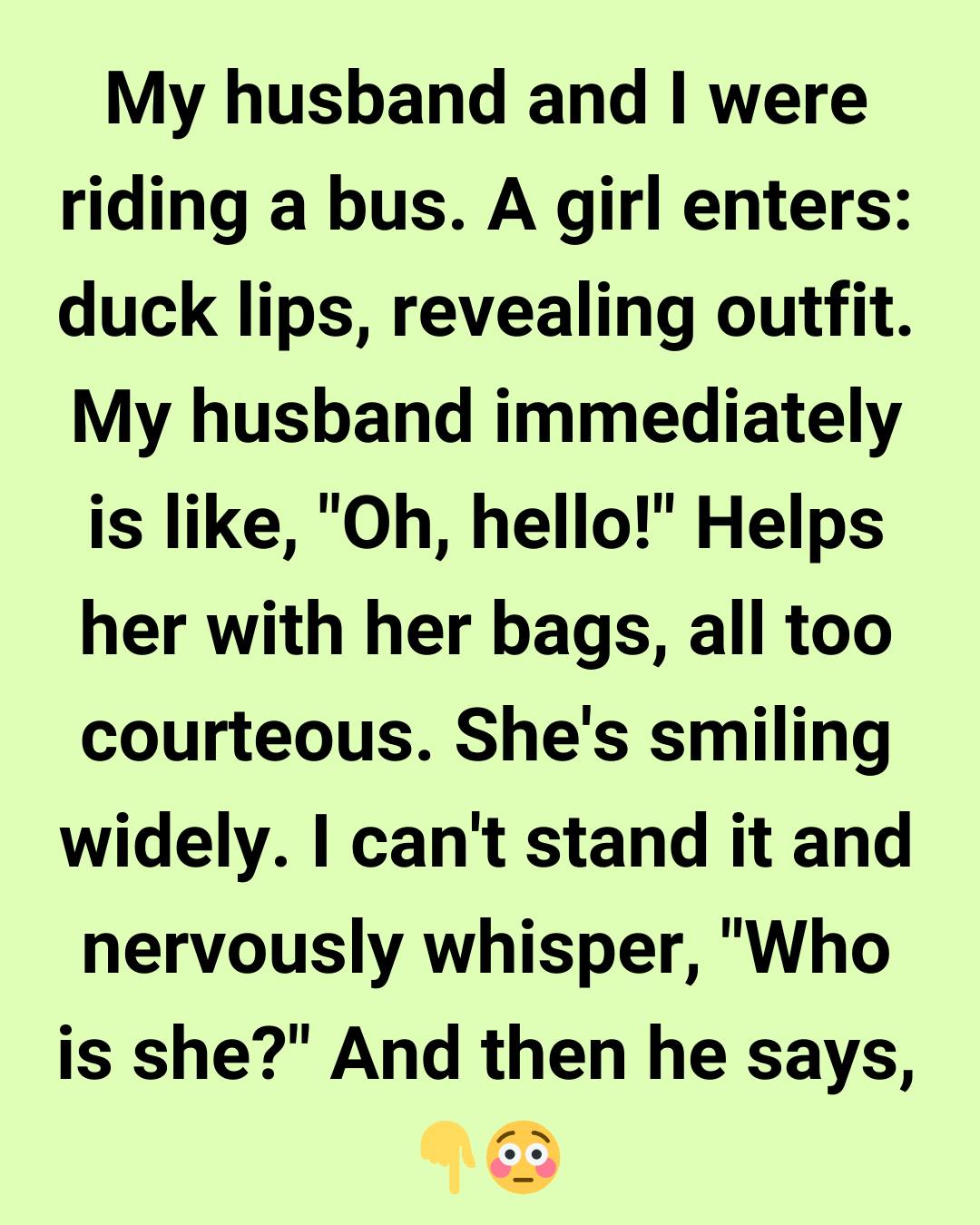 My husband and I were riding a bus.