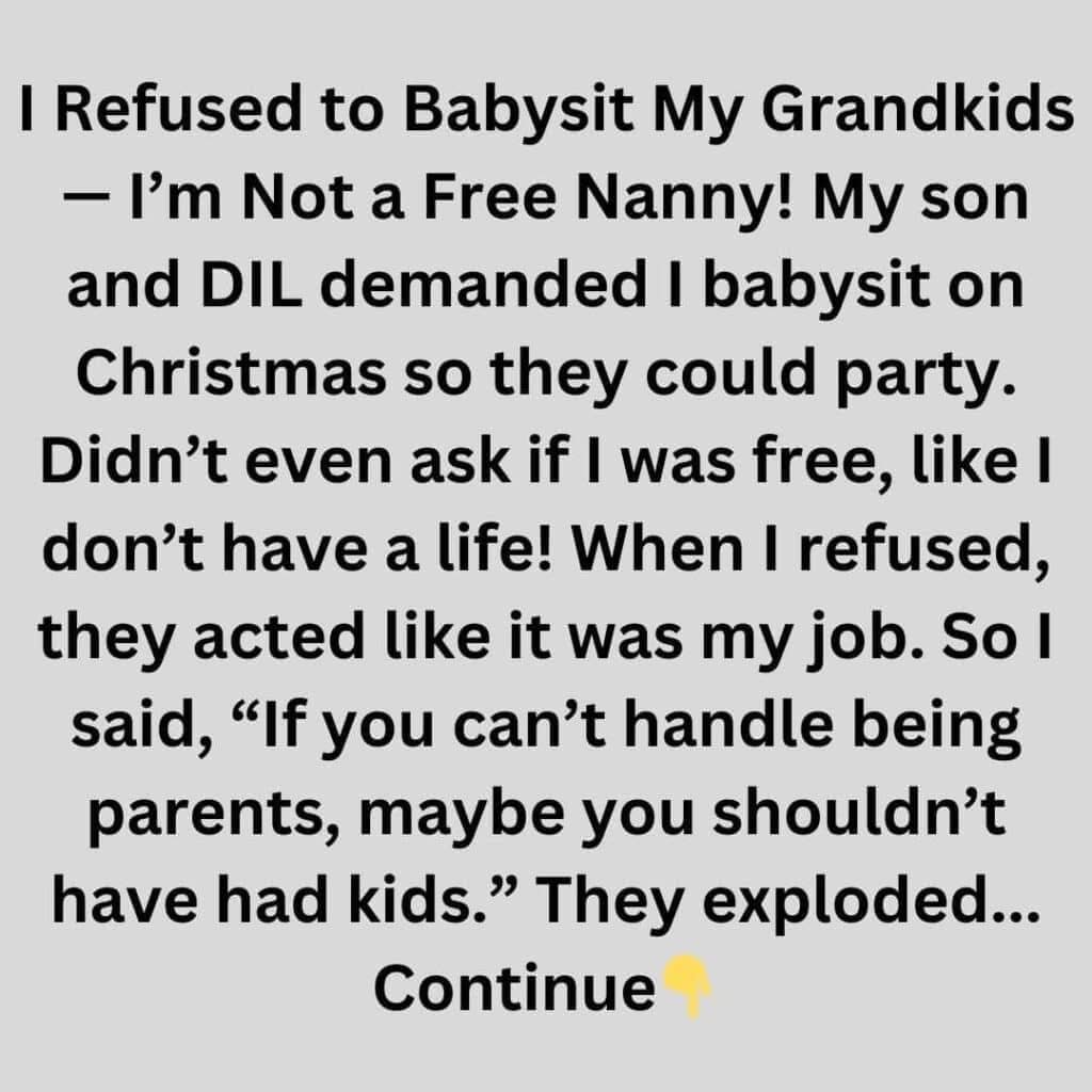Posted on January 3, 2025 By Gaga sardi No Comments on I Refused to Babysit My Grandkids — I’m a Grandma, Not a Free Nanny