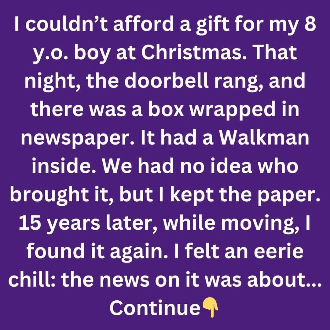 Years ago, on Christmas eve 2001, I was in tears: I couldn’t afford a gift for my 8 y.o. boy. That night, the doorbell rang, and there was a box wrapped in newspaper. It had a new Walkman inside. We had no idea who brought it, but I kept the paper as a memory.