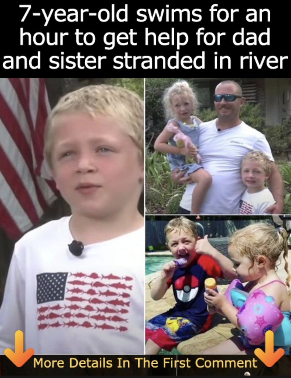 7-ye ar-old s wims for an hour to get help for dad and sister stranded in river