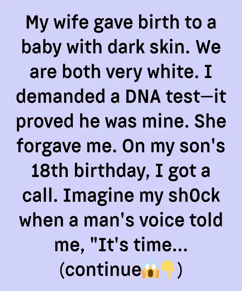 My wife gave birth to a baby with dark skin. We are both very white. She cried and swore he was mine. I demanded a DNA test—it proved he was mine. I begged her to forgive me. She did.