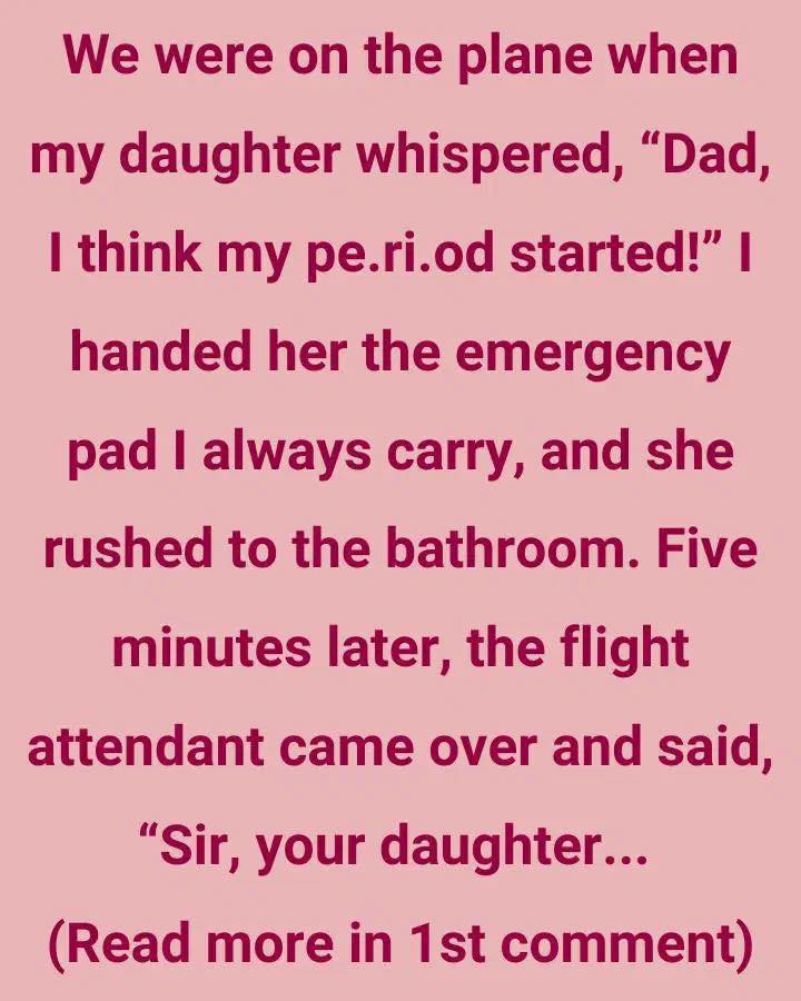My daughter whispered, “Dad, I think I just got my period,” while we were flying. I gave her the emergency pad that I always keep with me. A flight attendant came up to me a few moments later and said, “Your daughter asked if you have a real pad, sir. You gave her a liner, she claimed. I became very angry because I was unaware of the difference! Fortunately, a generous neighbor offered hers. My daughter said, “Next time, bring both,” after thanking us both when she got back. Now, I always do.