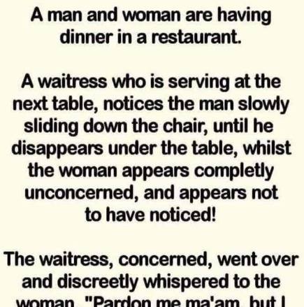 From under the blanket, she sees four legs instead of just her husband’s two.