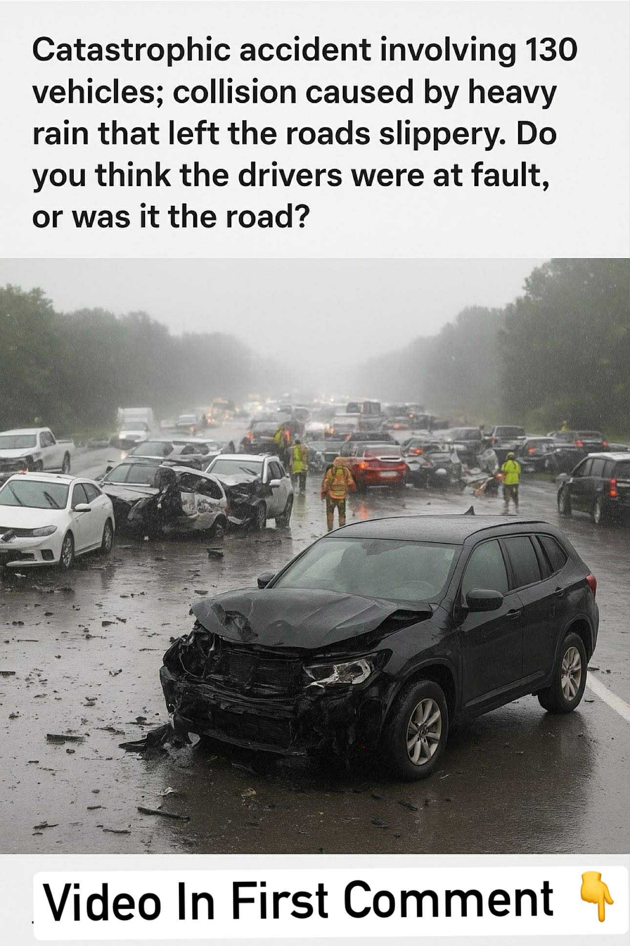 Catastrophe of accidents involving 130 vehicles, crashing due to heavy rain that left the roads slippery. Do you think the drivers or the road were at fault?Catastrophe of accidents involving 130 vehicles, crashing due to heavy rain that left the roads slippery. Do you think the drivers or the road were at fault?
