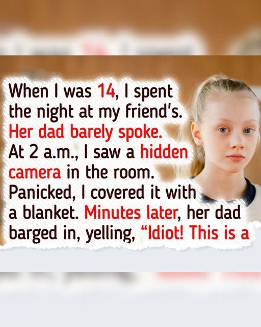 When I was 14, I spent the night at my friend’s. Her dad barely spoke. At 2 a.m., I saw a hidden camera in the room. Panicked, I covered it with a blanket. Minutes later, her dad barged in, yelling, “Idiot! This is a…”