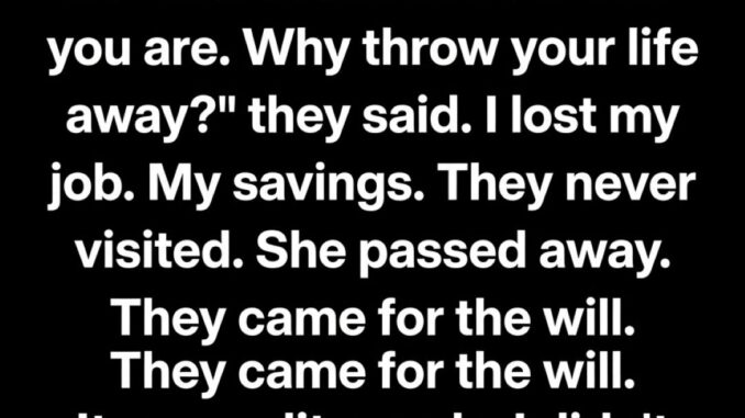 When she passed away, it was quiet, early in the morning. I sat beside her, holding her hand the way I had so many times before. Afterward, my siblings came together for practical matters. The will was read, and everything was divided evenly, just as she had arranged long before her illness. I didn’t argue or explain the years I had given. Grief had already taken enough energy, and I believed peace was more valuable than resentment. When everyone left, the house felt emptier than ever, not just because she was gone, but because the purpose that had guided my days was suddenly missing.