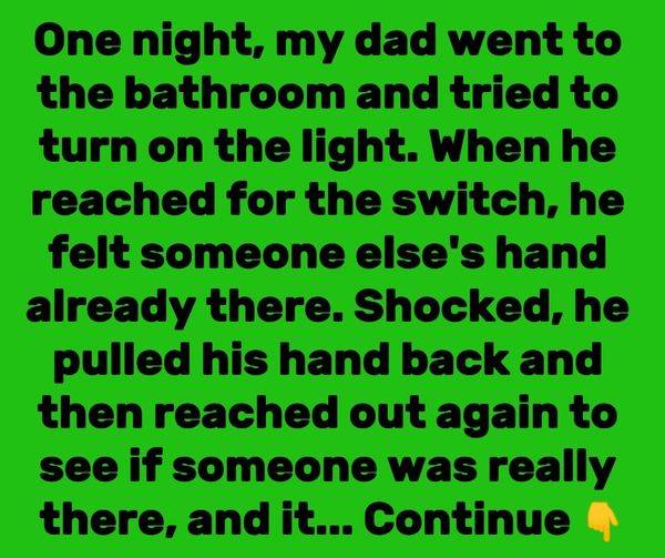 He reached for the light switch, surprised to feel what seemed like another hand already there. Startled, he pulled back, hesitating for a moment before reaching out…