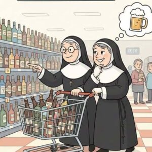 Two nuns were shopping in a food store and happened to be passing the beer and liquor section. One asks the other if she would like a…
